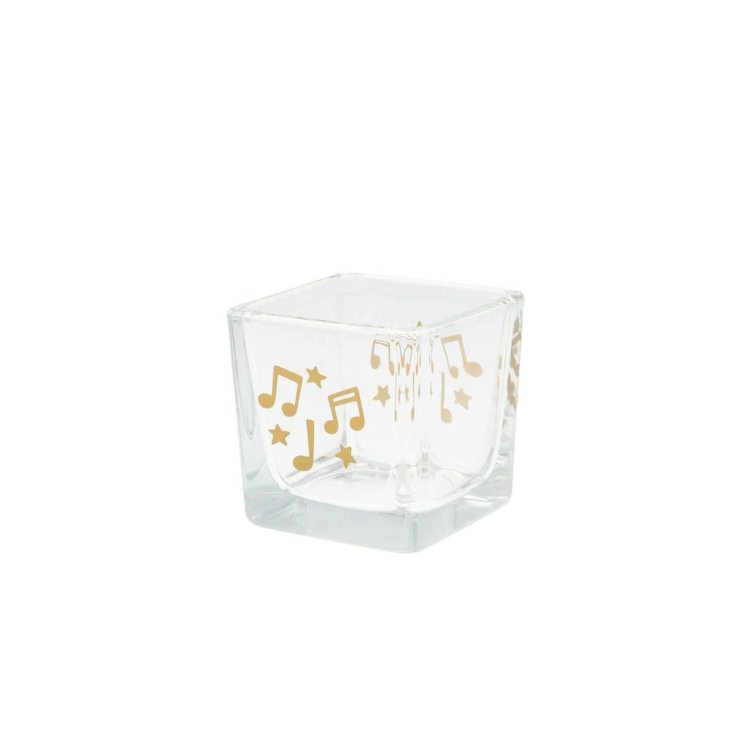 Quadratisches Teelichtglas mit Noten und Sterne